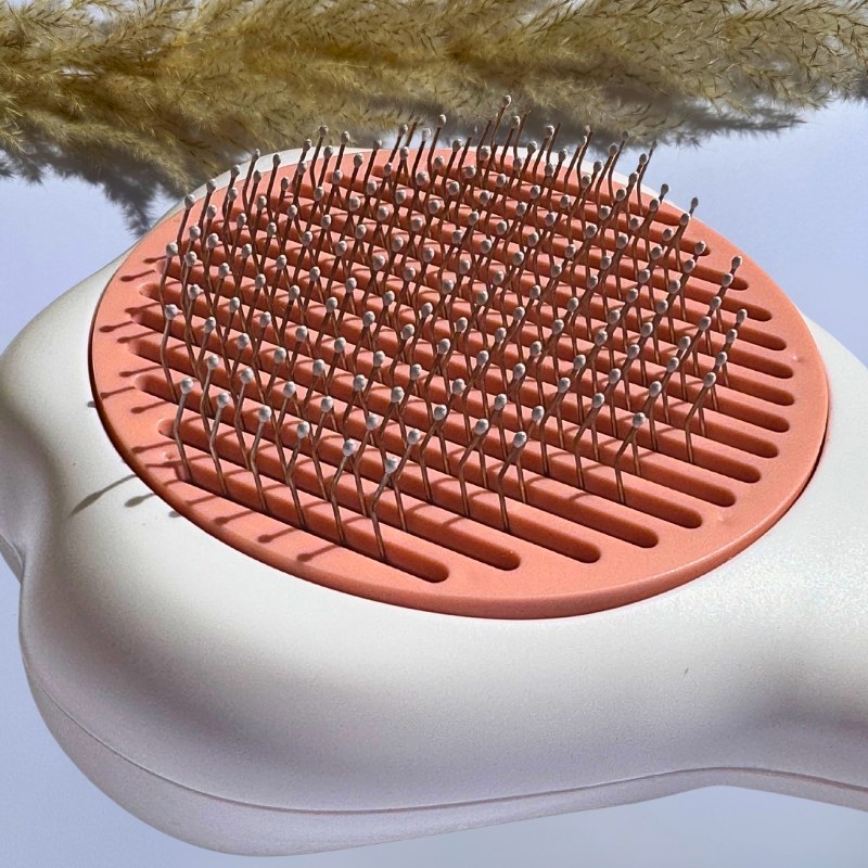• سوزن‌ های فلزی خمیده با نوک محافظ: این برس دارای سوزن‌ های استیل ضد زنگ با نوک گرد محافظ است که بدون آسیب زدن به پوست حیوان، به‌ راحتی موهای گره‌ خورده و مرده را از لایه زیرین جدا می‌ کند.