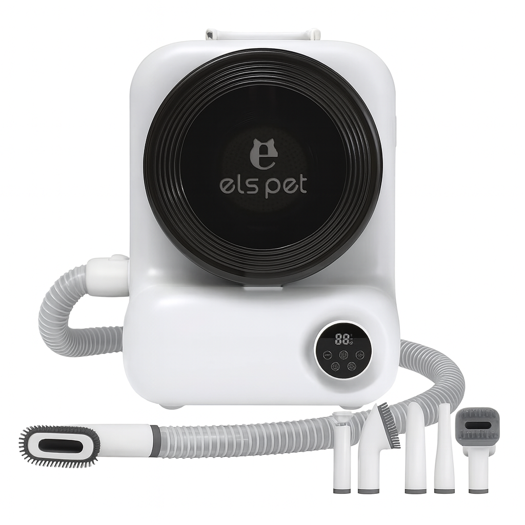 سشوار و پرزگیر Els Pet یک دستگاه حرفه‌ای و چندکاره برای نظافت و آرایش حیوانات خانگی است که با داشتن مخزن ۲ لیتری، موتور کم‌صدا و پنج سری کاربردی، فرآیند برس‌ کشی، جمع‌ آوری مو و خشک‌ کردن را هم‌زمان انجام می‌دهد. این دستگاه با مکش قدرتمند، سشوار دارای تنظیم دما و ماشین اصلاح دقیق، گزینه‌ای ایده‌آل برای سگ‌ها و گربه‌های پرمو است و به صاحبان حیوانات کمک می‌کند بدون ریزش مو در خانه، آرایشی تمیز، سریع و حرفه‌ای را تجربه کنند.