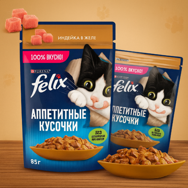 پوچ گربه فلیکس با طعم بوقلمون | Felix Turkey In Jelly