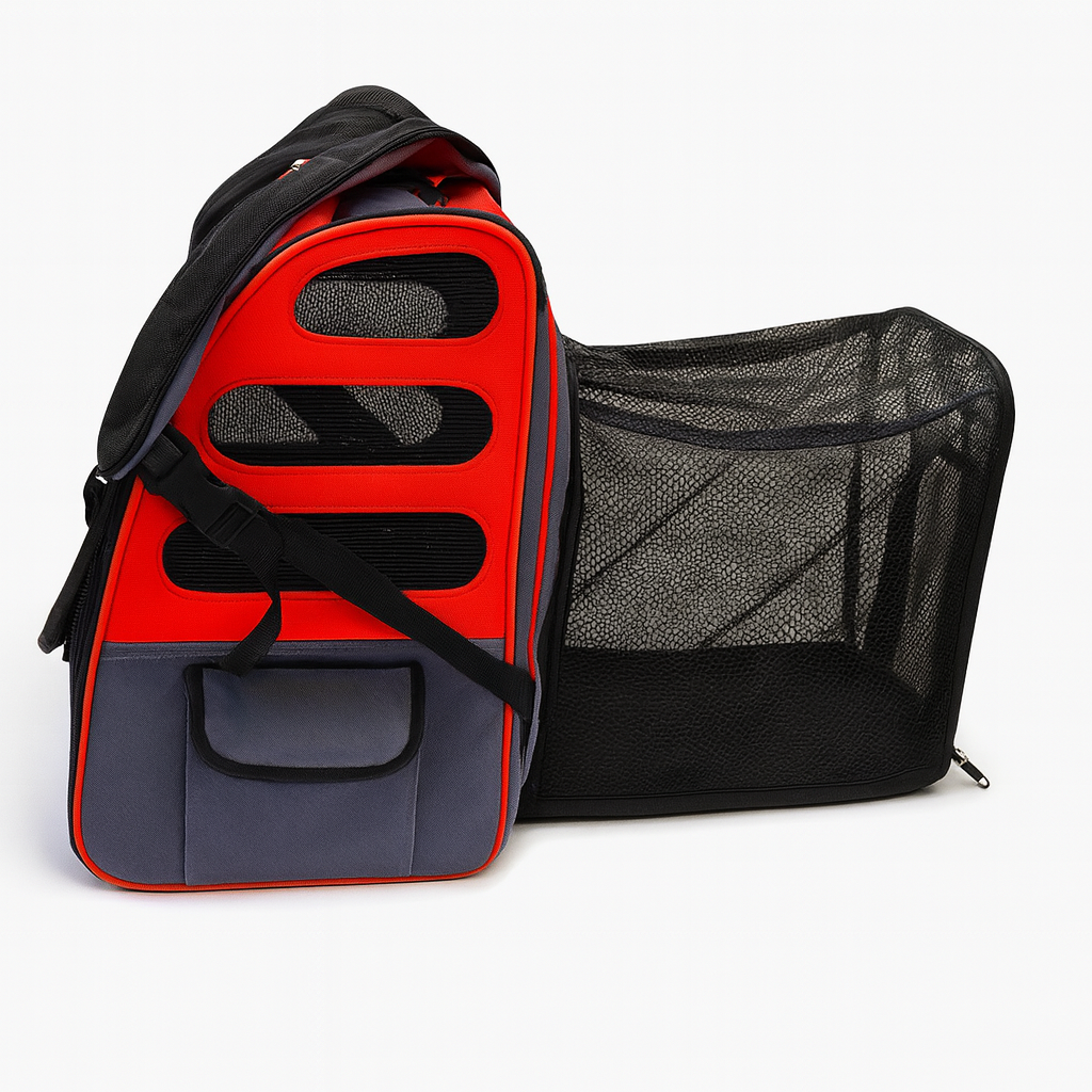 • تهویه هوای مناسب: وجود بخش‌های توری و مشبک در کناره‌ها باعث می‌شود جریان هوا در کیف برقرار باشد. این موضوع به حیوان کمک می‌کند در سفر دچار گرما یا استرس نشود و حس راحتی بیشتری داشته باشد.